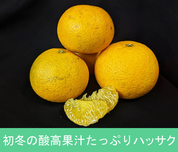 最近当園には「柑橘の酸味が好き」「もっと酸っぱいのが食べたい」と言うお声も寄せられており、初冬の酸味たっぷりのハッサクを販売し、ご好評いただいたので、今年も販売です。